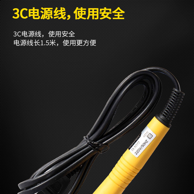 電烙鐵配置國(guó)標(biāo)3C電源線,電源線長(zhǎng)1.5米