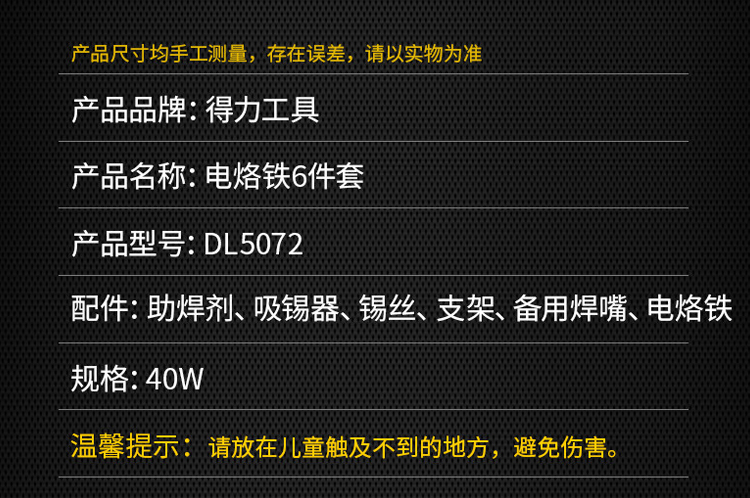 電烙鐵40W電烙鐵6套裝雙層云母發(fā)熱芯/不銹鋼外管/PC手柄