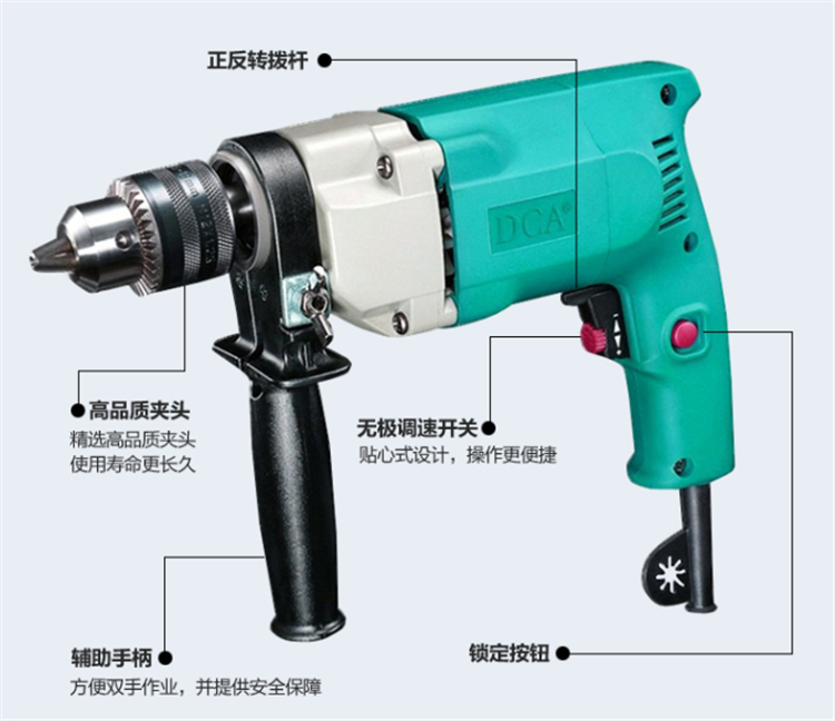 東成多功能手電鉆用于擰入和擰出螺絲,也可以在木材、金屬、陶器和塑料上鉆孔例