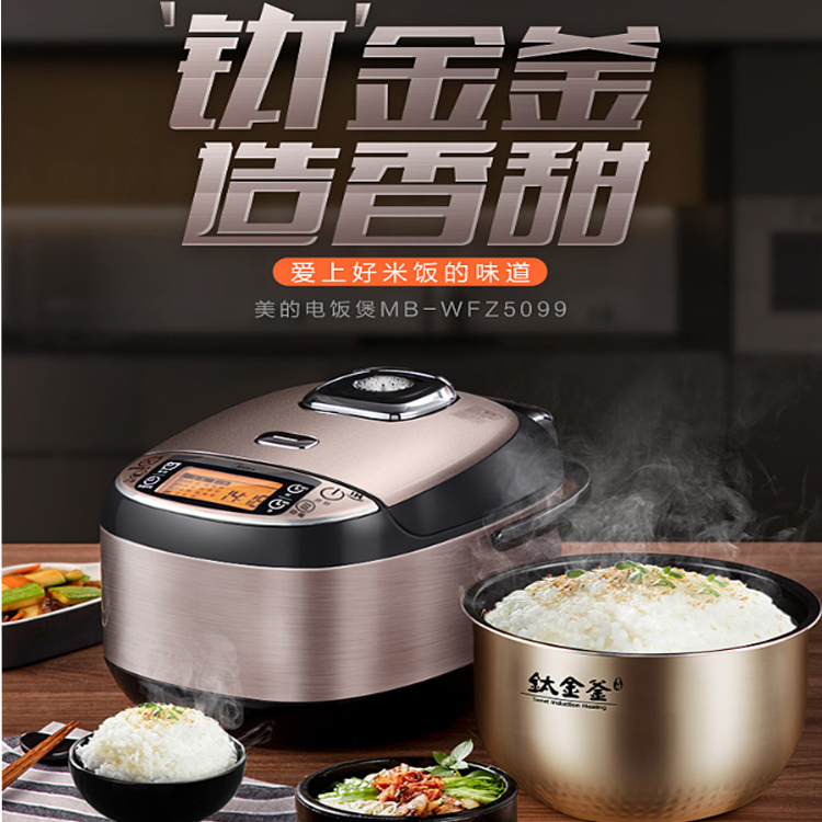 美的多功能電飯煲內(nèi)膽采用高聚能鈦金材質(zhì),儲熱導(dǎo)熱性能佳。