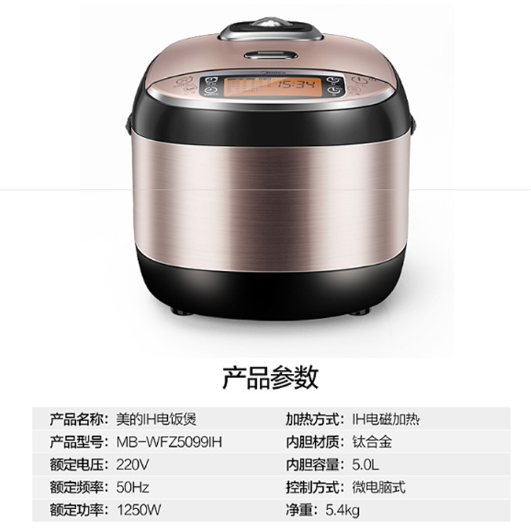 美的(Midea)電飯煲電飯鍋5L大容量鈦金釜內(nèi)膽IH電磁加熱米飯口感可選多功能