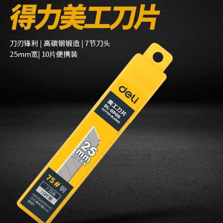 得力美工刀片(銀色)(10片/盒)DL-DP05,采用合金鋼鍛造、韌性好、鋒利。