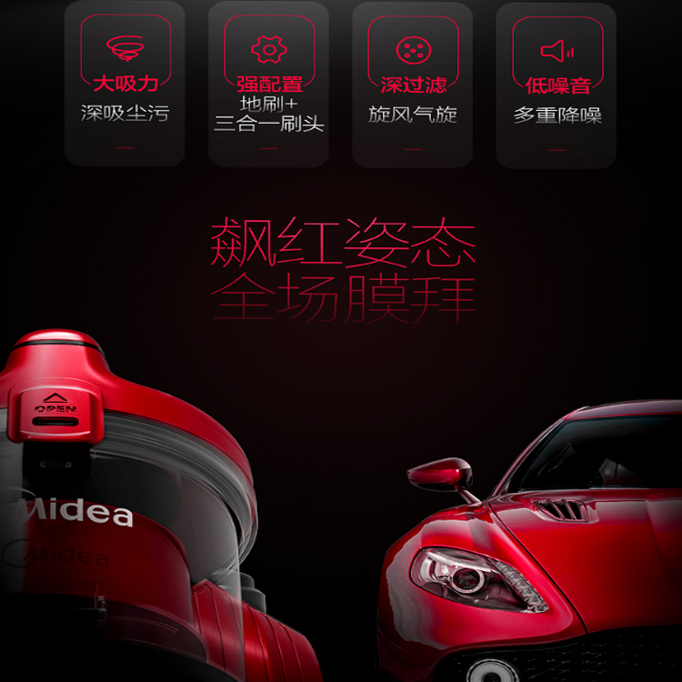 美的家用無耗材臥式吸塵器大吸力,深吸塵污,更加潔凈。