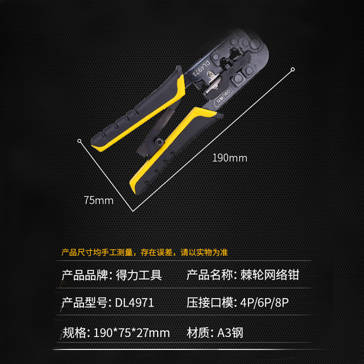 得力棘輪網(wǎng)絡(luò)DL4971網(wǎng)線鉗A3鋼鉗套裝網(wǎng)絡(luò)水晶頭壓接壓線鉗