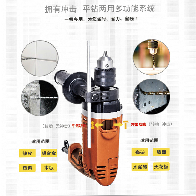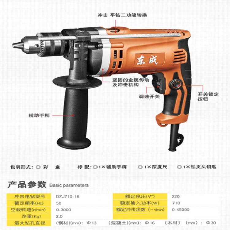 東成沖擊電鉆DZJ710-16適用于對(duì)混凝土地板、墻壁、磚塊,石料