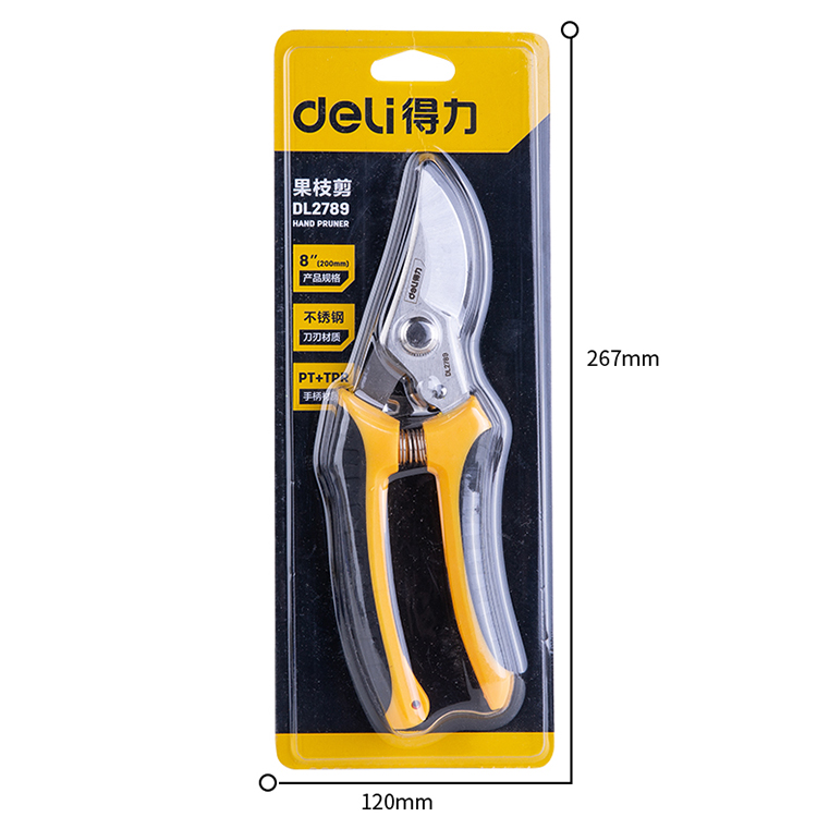 得力工具 DL2789花木不銹鋼枝剪刀彎嘴果枝剪,