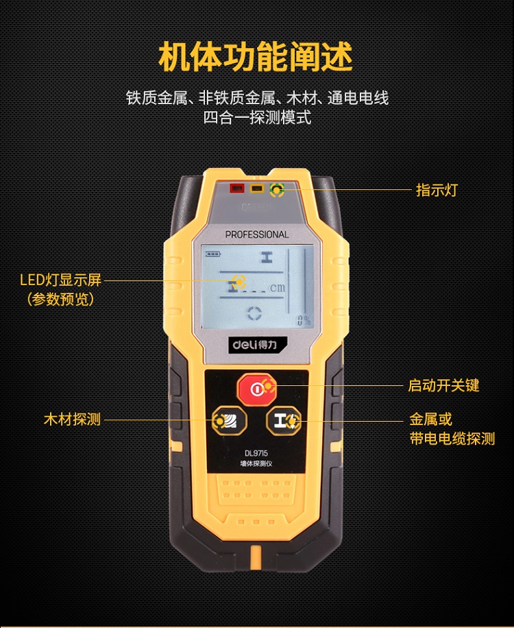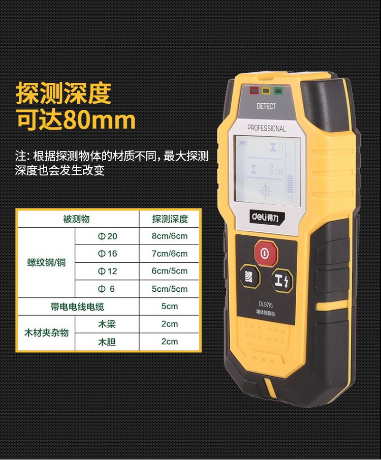 得力(deli) 多功能金屬探測(cè)器探測(cè)儀木材電纜墻壁電線墻體檢測(cè)儀