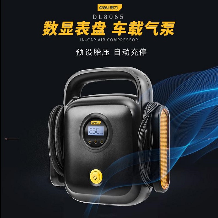 得力工具車載充氣泵汽車用小轎車輪胎打氣泵車用電動便攜式打氣筒