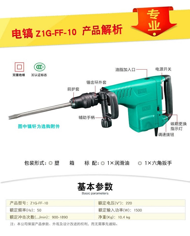 東成DCA電鎬 Z1G-FF-10專業(yè)混凝土石材鑿削拆墻開槽電鎬1500W