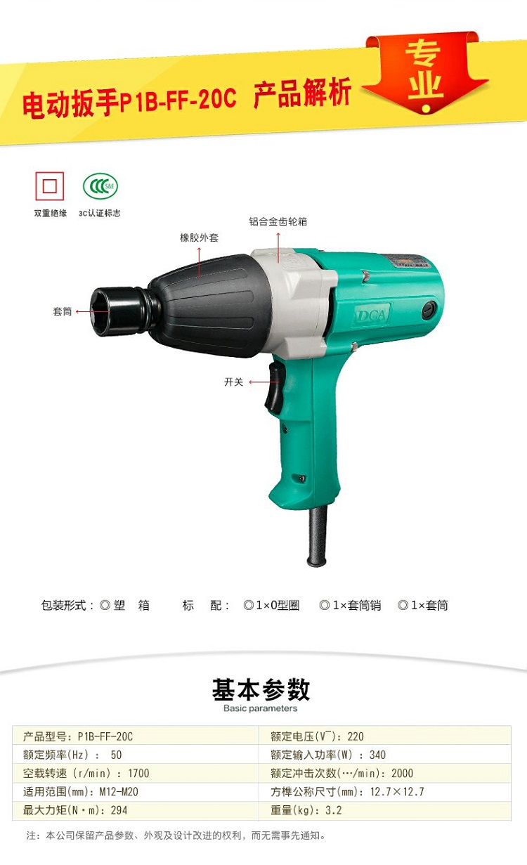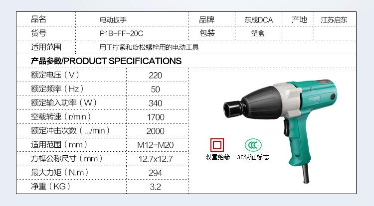 東成DCA電動扳手P1B-FF-20C電扳手架子工木工電動風炮沖擊扳手