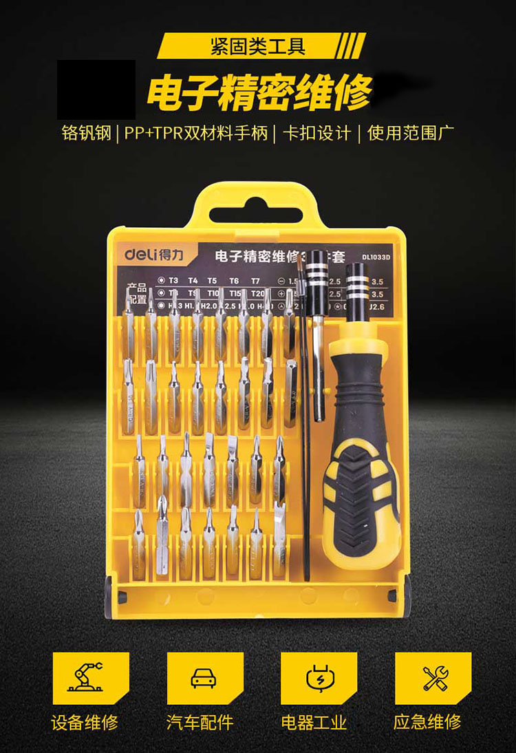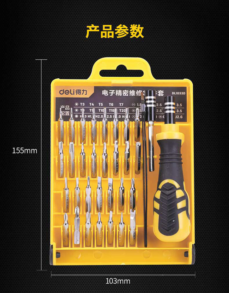 得力工具多功能精密維修電子螺絲批組套33/45件螺絲刀套裝手機維修