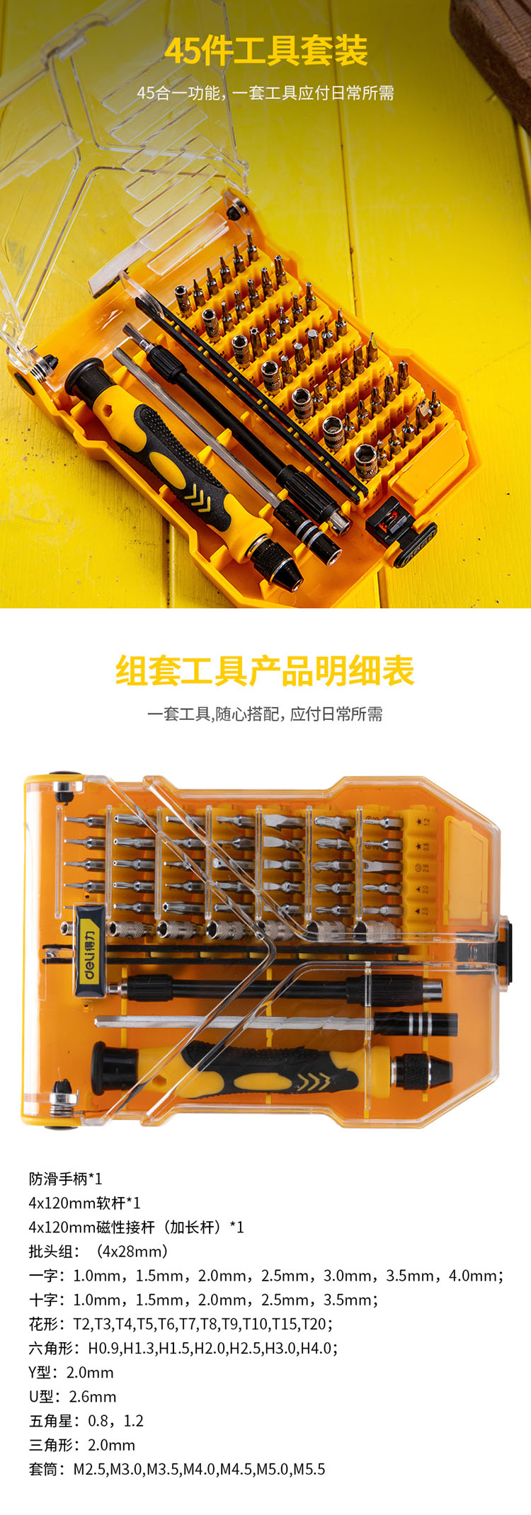產(chǎn)品名稱: 螺絲批45件套(黃)