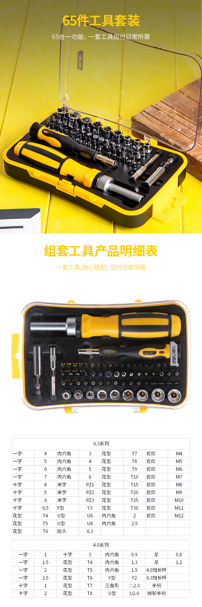 產(chǎn)品名稱: 螺絲批65件套(黃)