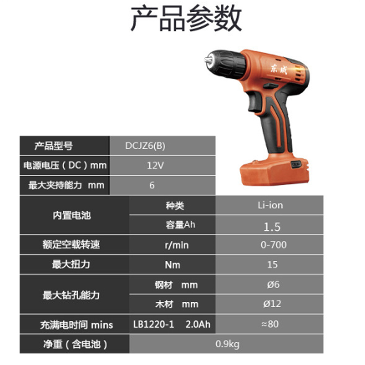 東成12V充電式起子電鉆DCJZ6(B)金屬鉆夾頭穩(wěn)固不脫落,高強度精鋼打造,