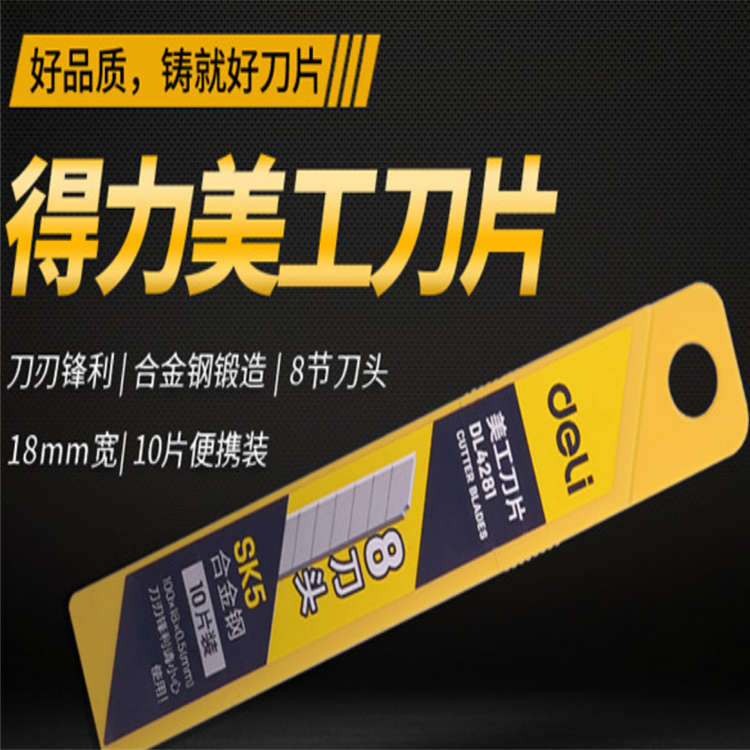 得力美工刀片刀體采用SK5合金鋼鍛造,韌性好、更鋒利。