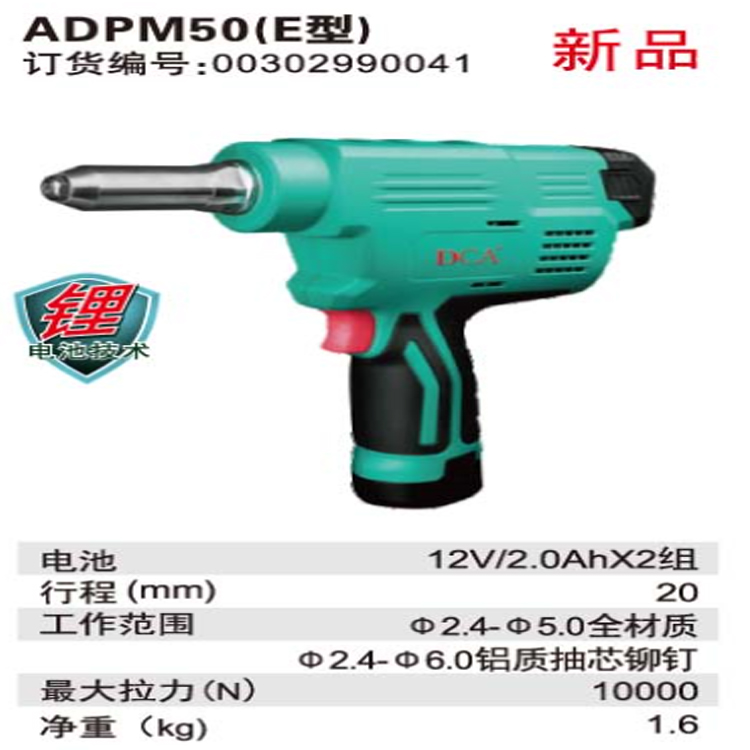 DCA充電式抽芯鉚釘槍ADPM40(E型)/50(E型)優(yōu)質(zhì)電機(jī),壽命長,