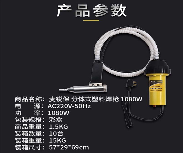 麥銳保1080W分體式塑料焊槍參數(shù)