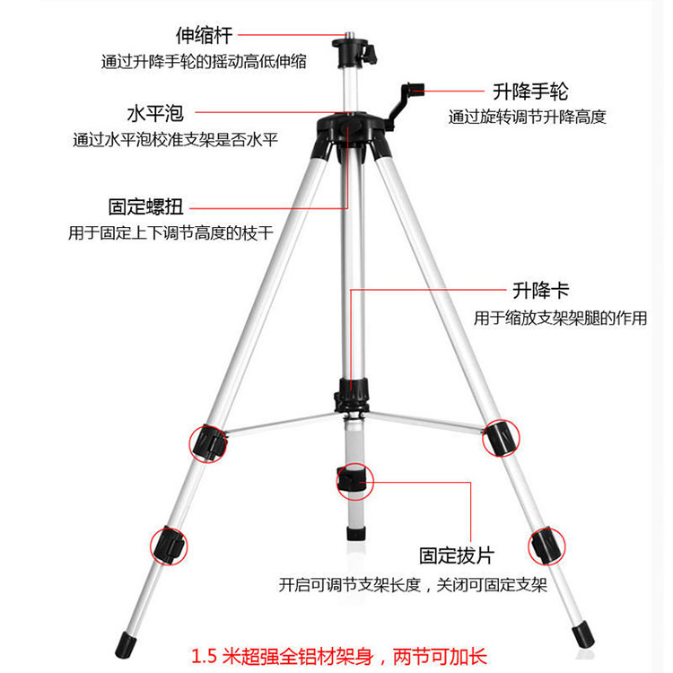 東成激光水平儀通用三角架三腳架精品加厚鋁合金支架1.5米高,
