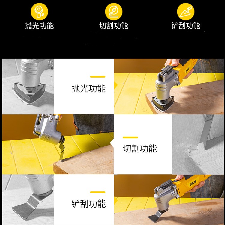 拋光功能,可用于木材、金屬表面和角落砂光、拋光等;