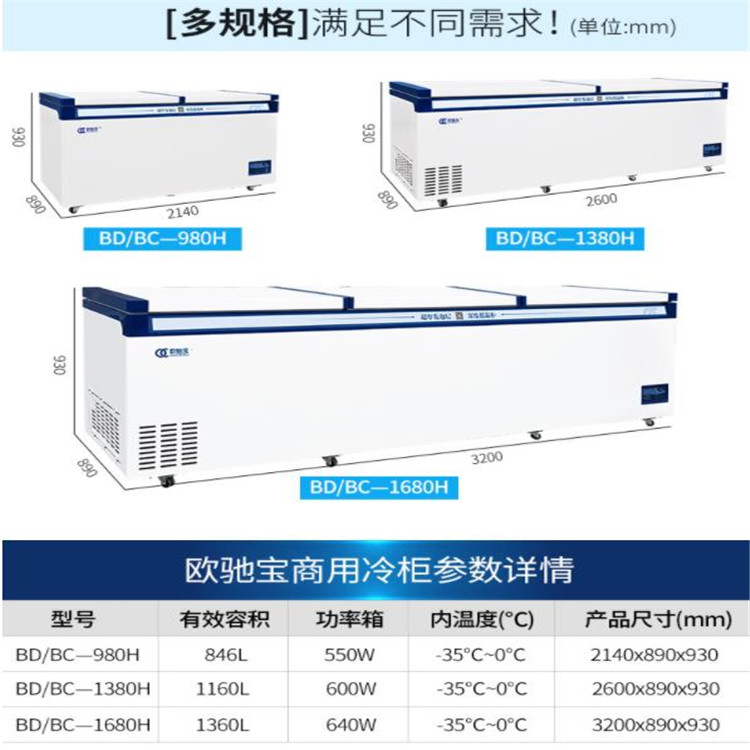 歐馳寶冷柜BD/BC-980H/1380H/1680H深度低溫系列銅管冷藏冷凍冰柜商用