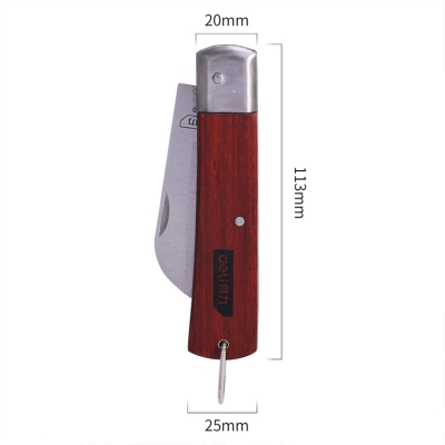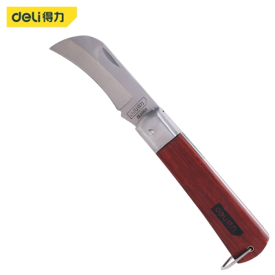得力電工刀DL0060木柄絕緣直刃彎刃電纜刀電線剝線剝皮折疊
