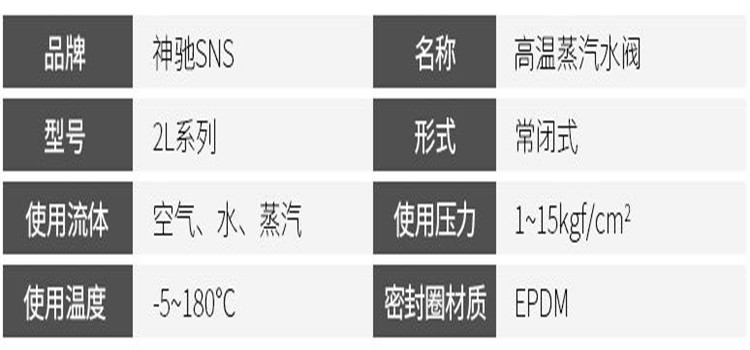 神馳2L常閉型高溫水閥產(chǎn)品參數(shù)