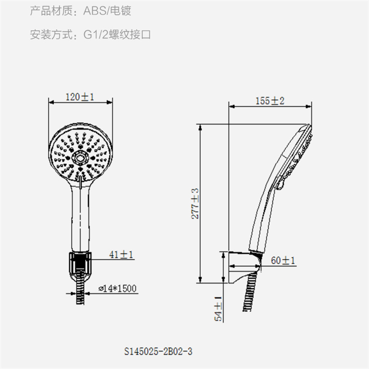 JOMOO九牧 增壓手握花灑沐浴套裝S145025-2B02-3(含軟管 墻座)