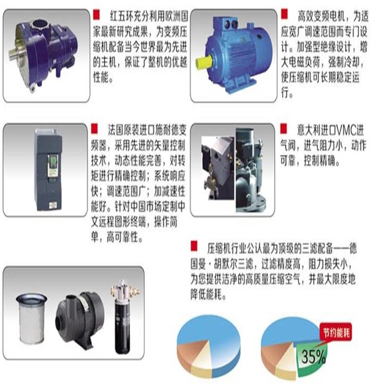 紅五環(huán)VLG系列變頻節(jié)能螺桿空氣壓縮機,適用于紡織、噴涂、醫(yī)療、化工、建材等