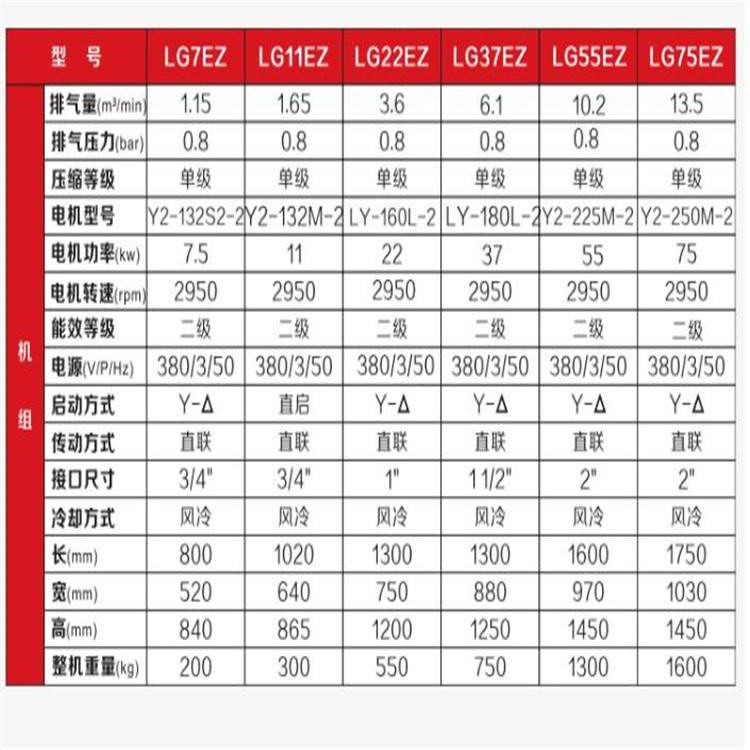 紅五環(huán)LGEZ系列固定式螺桿空氣壓縮機(jī),參數(shù)表