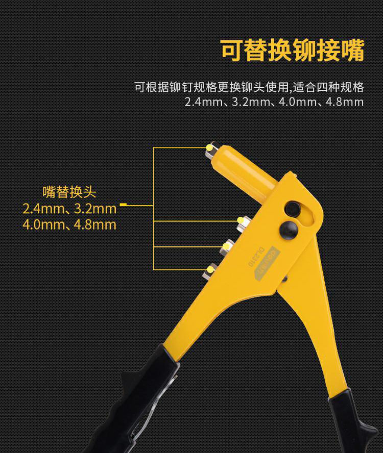 可根據(jù)鉚釘規(guī)格更換鉚頭使用,適合四種規(guī)格