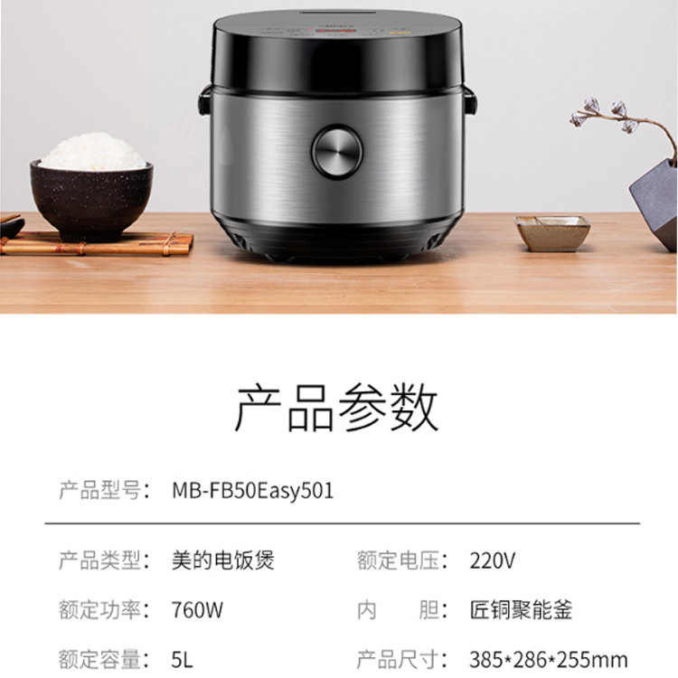 美的(Midea)電飯煲電飯鍋5L大容量智能預約觸摸操控一鍵柴火飯多功能電飯煲