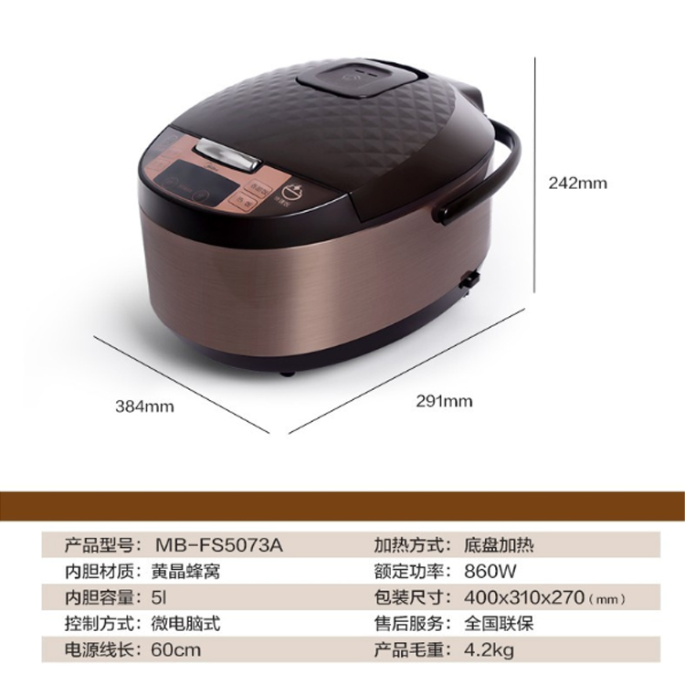美的家用電飯煲采用蜂窩內(nèi)膽,均勻加熱,米飯不結塊。