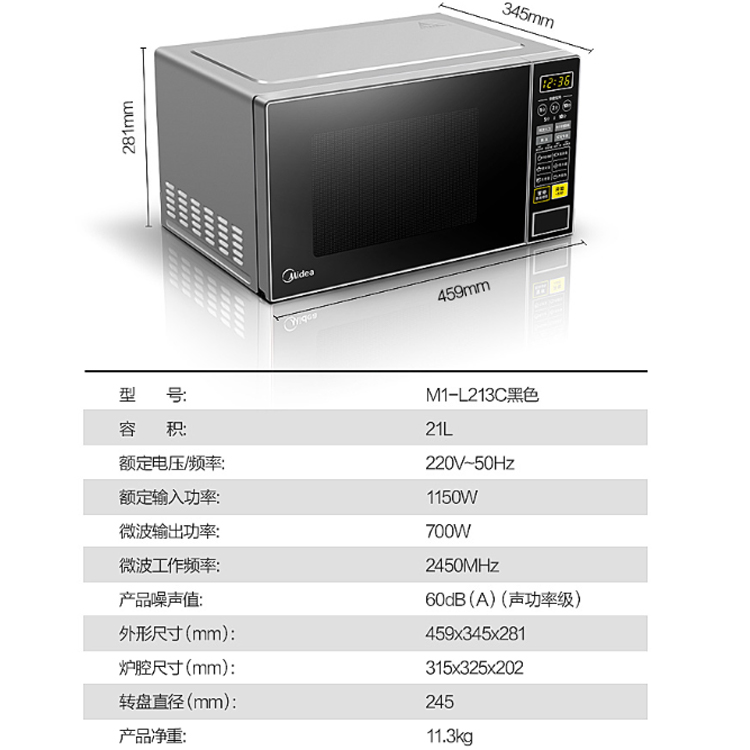 美的(Midea)M1-L213C 快捷家用微波爐 微電腦操控 轉(zhuǎn)盤加熱 智能菜單