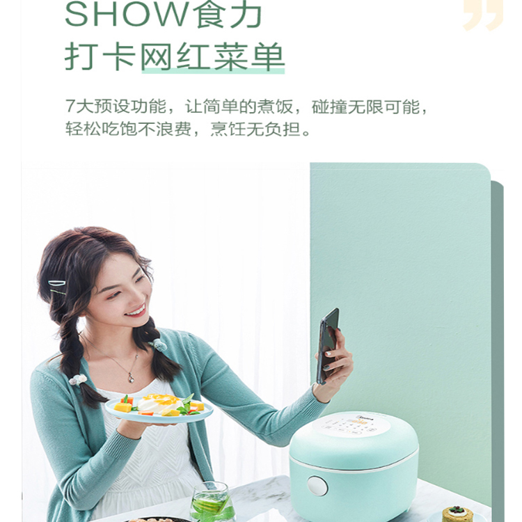 美的迷你智能電飯煲7大預設功能,烹飪無負擔。