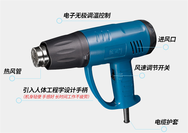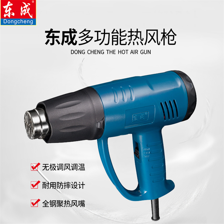 東成熱風(fēng)槍無極調(diào)風(fēng)調(diào)溫,耐用防摔設(shè)計(jì),全鋼聚熱風(fēng)嘴,兩檔調(diào)節(jié)開關(guān),檔位清