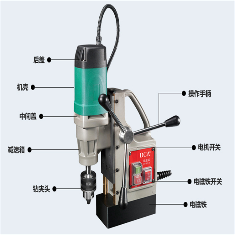 鉆油臺,電力施工,鐵路制造等領(lǐng)域。磁力鉆是用電磁原理通過磁座,把鉆機機架和