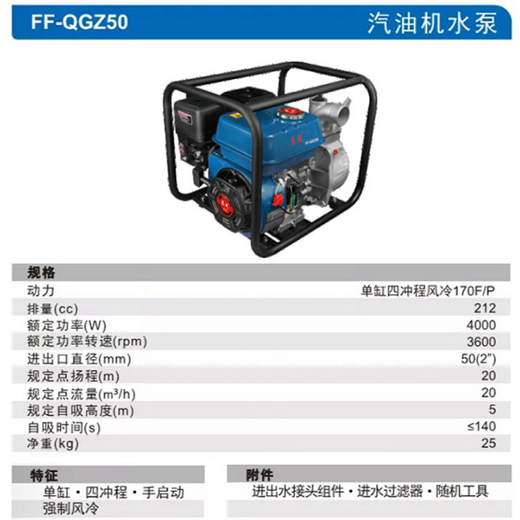 自吸快,揚(yáng)程高,流量大,油耗低。