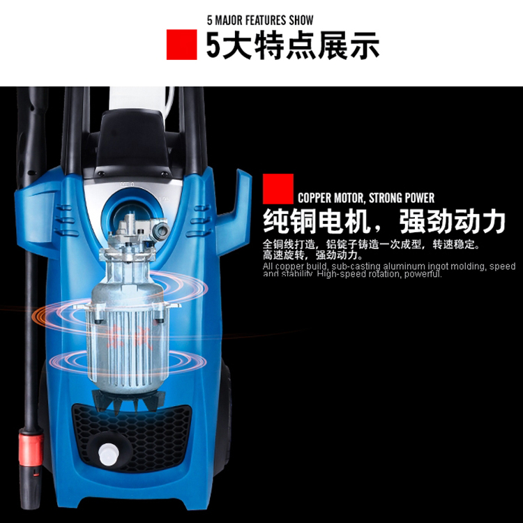 高壓清洗機5大特點,純銅電機,強勁動力全銅線打造,鋁錠