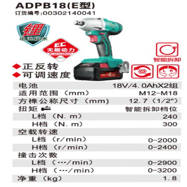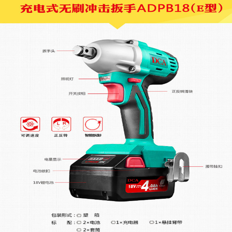 DCA充電式無刷沖擊扳手ADPB18(E型)是擰緊和旋松螺栓及螺母的電動(dòng)工具,