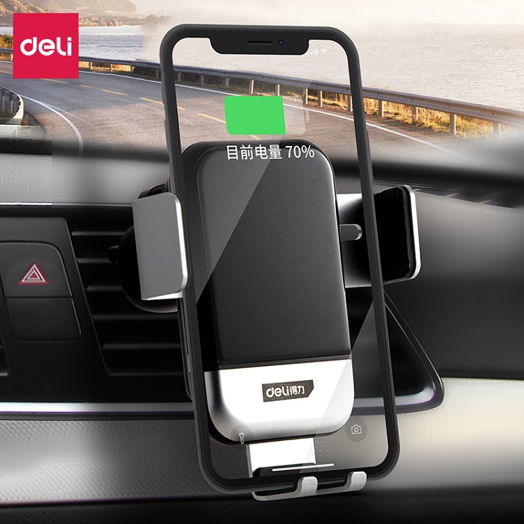得力感應(yīng)式車載無線充電器手機(jī)支架快充無線車充卡扣式支架