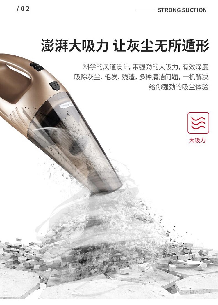 手持式吸塵器科學的風道設計,帶強勁的大吸力,有效深度吸除灰塵