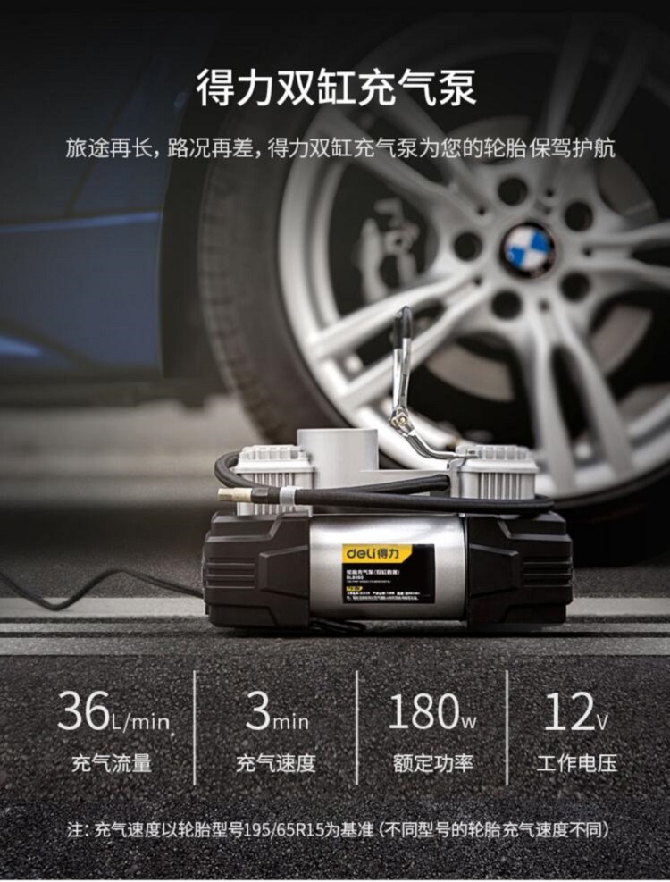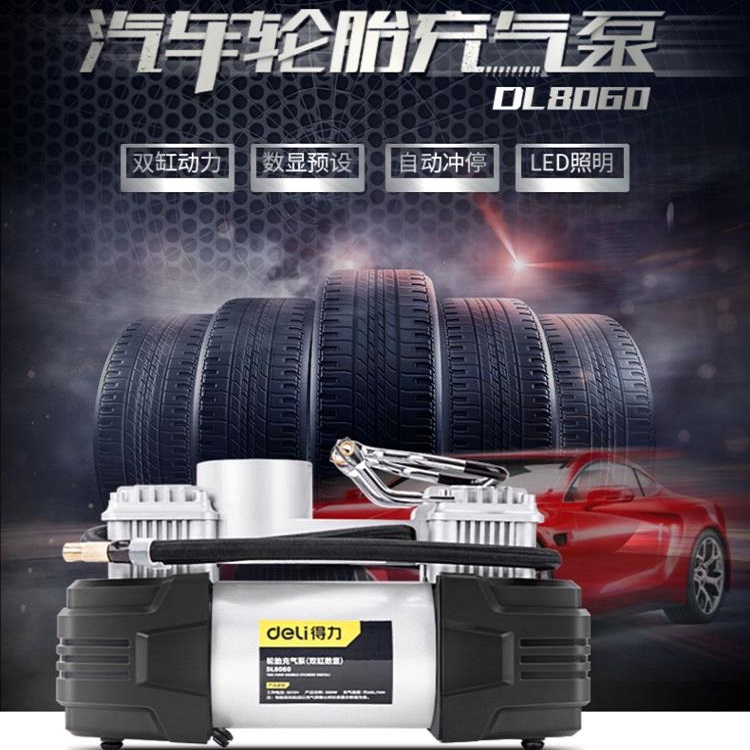 得力工具車載充氣泵汽雙缸便攜式小轎車大功率汽車輪胎充氣打氣泵
