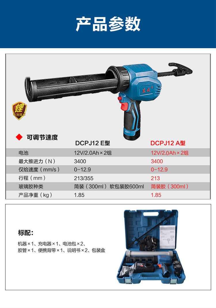 東成DCPJ12(A型) 充電式打膠槍東成工具基本參數(shù)