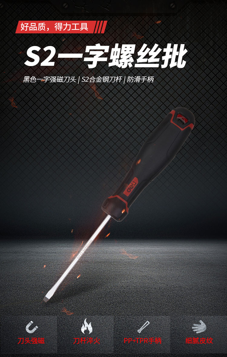 得力S2合金鋼一字螺絲刀家用工具改錐平口起子螺絲批帶磁性工業(yè)級(jí)