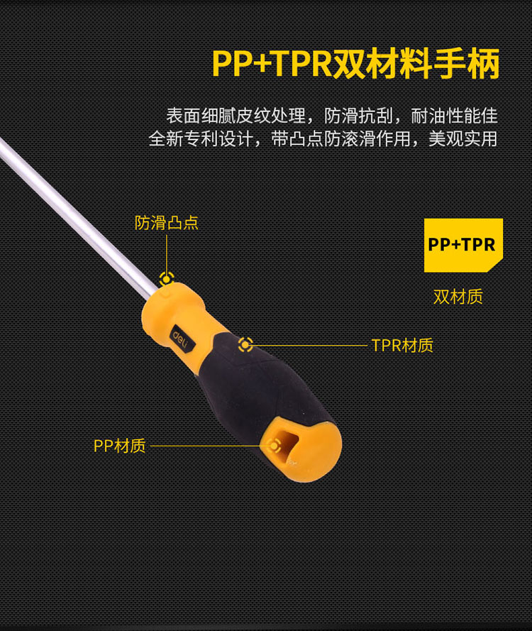 握柄前端防轉(zhuǎn)凸點(diǎn)設(shè)計(jì),刀桿為鉻釩鋼整體淬火而成,