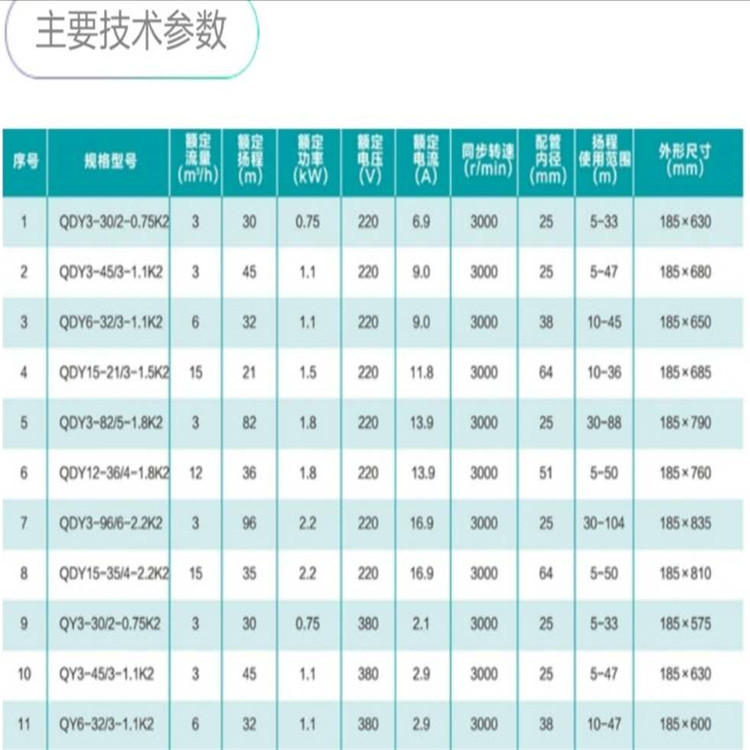 新界巨能芯型多級潛水電泵參數(shù)圖