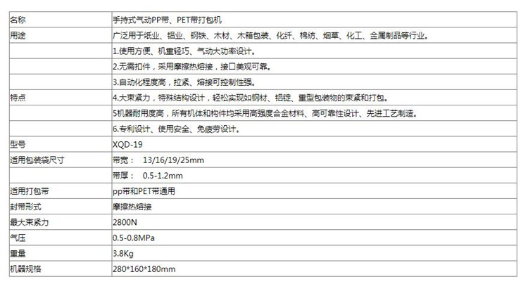 XQD19手持式氣動(dòng)PP帶、PET帶打包機(jī) 參數(shù)展示圖