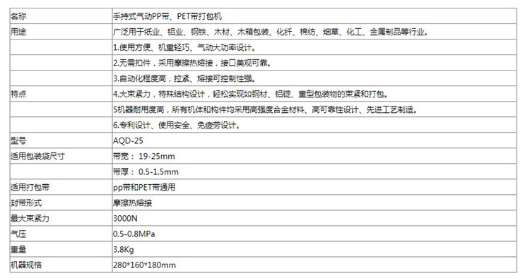 AQD25手持式氣動(dòng)PP帶、PET帶打包機(jī) 參數(shù)展示圖