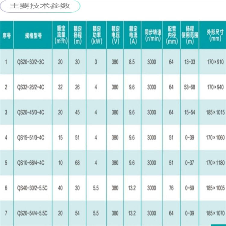 新界水式潛水泵業(yè)參數(shù)圖