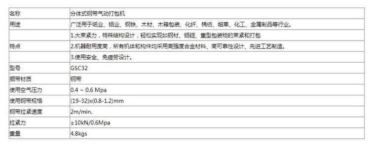 GSC32分體式鋼帶氣動(dòng)打包機(jī) 參數(shù)展示圖